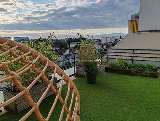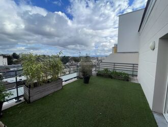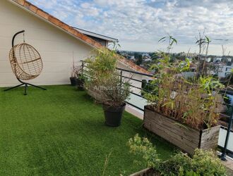Au dernier étage d'un immeuble récent avec ascenseur, cet appartement traversant , en duplex se compose d'un séjour ouvrant sur une terrasse, d'une cuisine US équipée, de deux chambres ouvrant sur un balcon, d'une salle d'eau, et en duplex vous trouvez une grande mezzanine , une salle de bains avec WC et une superbe terrasse d’où l'on voit les Pyrénées.